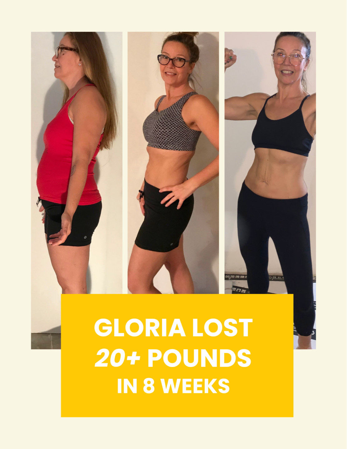 After menopause, Gloria released over 30 pounds and has kept it off for more than eight years. She now helps women over 40 restore their metabolism and achieve lasting results.